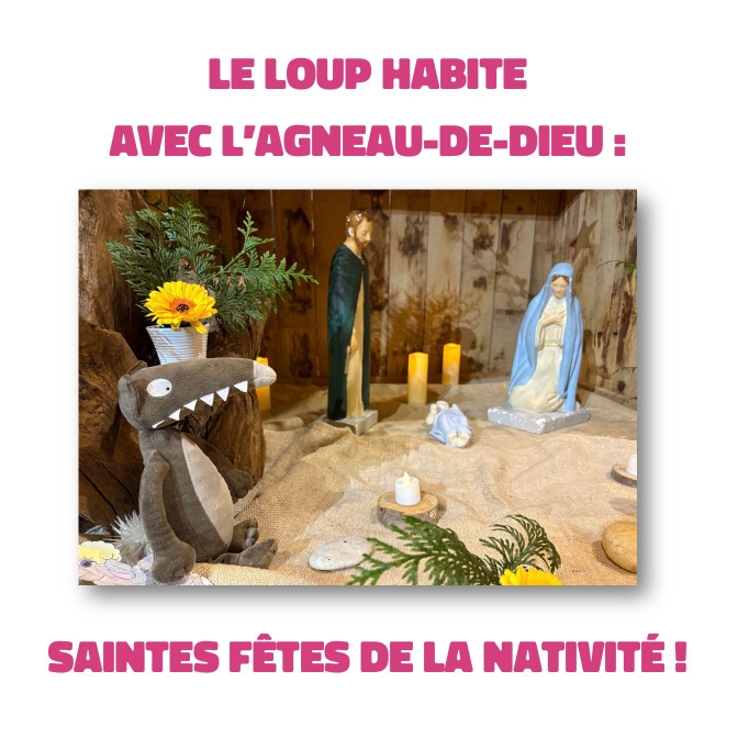 Oui, le loup - qui si souvent incarne le mal - habite avec l’agneau, incarnation de l’Amour et du bien. Évidemment, nous savons que le mal et le bien sont intrinsèquement mêlés. Mais, avec foi, nous croyons que le bien, le vrai, l’Amour infini triomphera. Joyeux Noël !