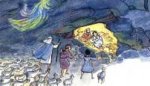 Un enfant portait sur ses épaules un agneau de l’année, le déposa là, près de l’homme qui semblait méditer ; - l’âne et le bœuf n’en revenaient pas - Le nouveau-né reposait sur la paille – C’était de la vraie paille ! - L’enfant berger ravi se tourna vers la mère :