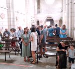 Au moment du Notre Père, le Père Julien a appelé les enfants, seuls ou avec leurs parents, à venir autour de l’autel.