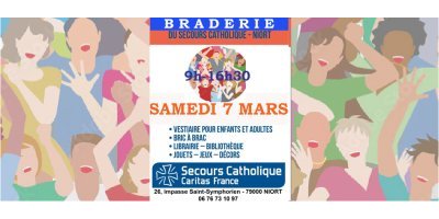 SAMEDI 7 MARS 2026 de 9H à 16H30, BRADERIE au Secours Catholique de Niort !