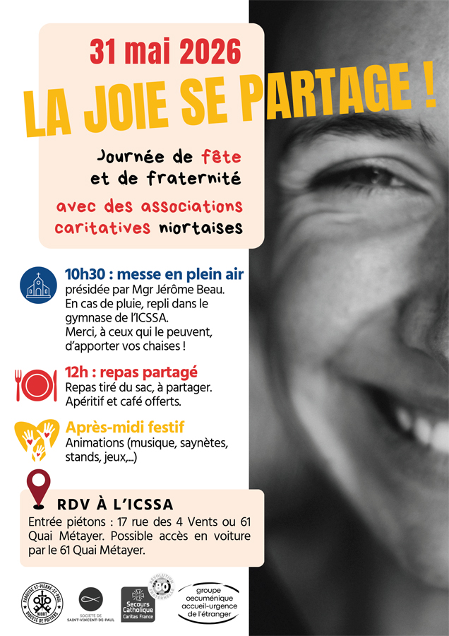 • Dimanche 31 mai 2026 : journée de fête et de fraternité avec des associations caritatives niortaises !