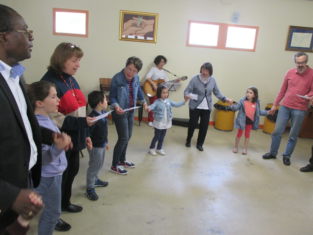 Pendant ce temps d’accueil, une musique joyeuse s’échappe de la guitare de Juliette qui chante : « Les enfants de la terre sont tous des enfants de lumière ». Rapidement, une ronde se met en place et la fête commence en chantant !