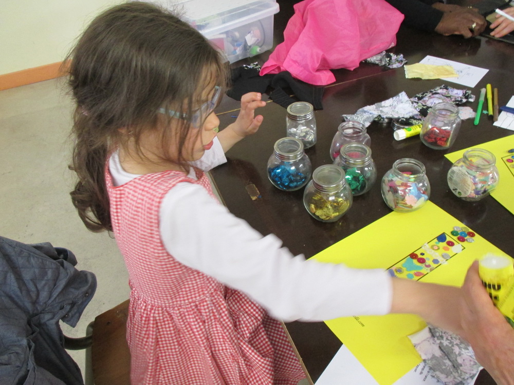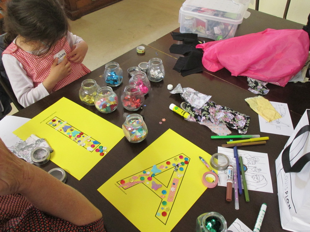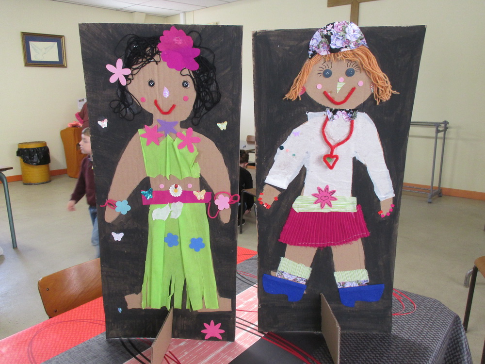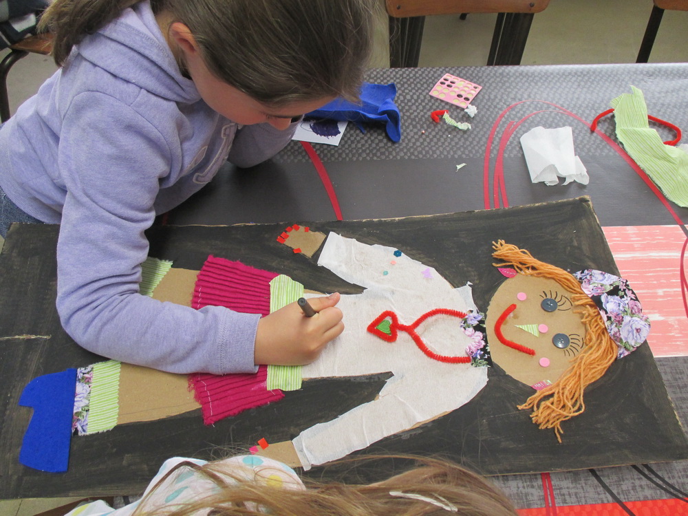 Puis les enfants se répartissent en ateliers, confectionnant 5 personnages identifiés aux cinq continents et portant chacun une lettre du nom de MARIE.