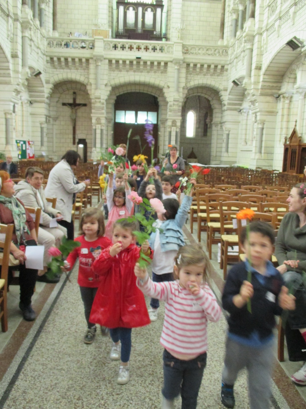 Ce samedi après-midi 13 mai 2017, les enfants arrivent tranquillement avec leurs parents, une fleur à la main, une fleur à offrir à la Vierge Marie que l’on fête tout spécialement aujourd’hui.