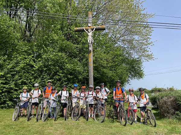 Ce lundi, 48 collégiens, 25 lycéens et une trentaine d’adultes se sont élancés depuis Ligugé pour participer au 8ᵉ Pélé VTT du diocèse de Poitiers. Nous rejoindrons Notre-Dame de Pitié vendredi.