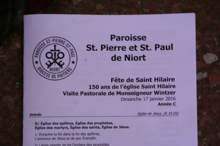 La Messe d’ouverture de la visite pastorale de Mgr Wintzer a eu lieu dimanche 17 janvier 2016 en l’église St-Hilaire de Niort